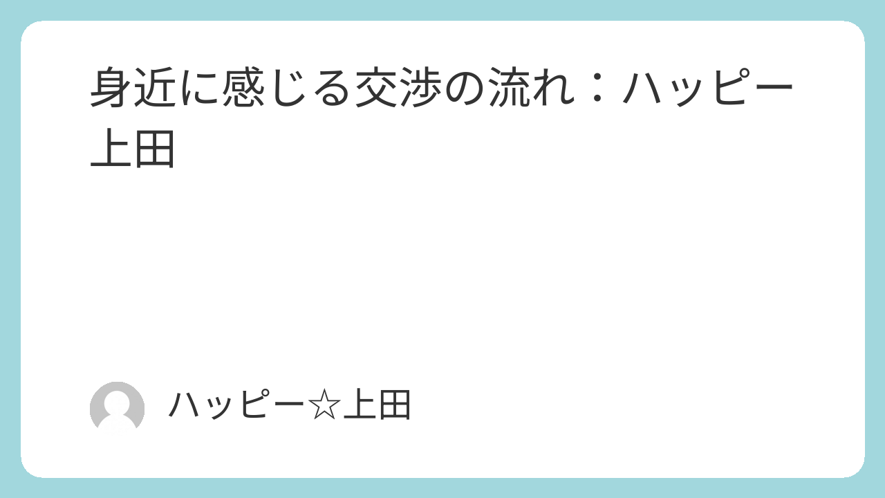 6月もブログ強化月間ということでブログバトン前走者、バラしのTATSUこと南畑君から貰ったテーマ「身近に感じる交渉の流れ」について考えを述べたいと思います。