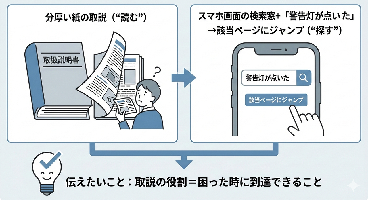 だから取説も、探せる・分かる・更新できる設計へ進化させる必要があります。
