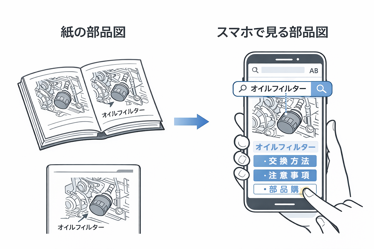 - 図版と手順が迷わず紐づく 部品ID/名称の統一